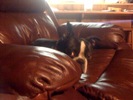 Gertie is a wire-haired dachshund. She was surrendered to the local pound by a breeder who no longer wanted her. She is getting a bit older (~6 years old) and I'm assuming was thought not to be a good breeder any longer. Unbeknownst to the breeder, she was pregnant at the time she was surrendered. Gertie gave birth to 8 little babies on Christmas Day, 2010. However, since all the staff were home for Christmas, nobody knew ... and she lost 6 of her puppies, probably to chill. The ladies at the pound called me, and I brought this sweetie and her babies home. The two she has left are very healthy and happy, and BOY! does she love these babies! There are 2 little girls, and we believe they are full blooded dachshund, but we could be mistaken.