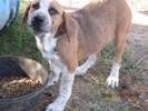 BlueBelle is a full blooded Neapolitan Mastiff. She is still in tact (not spayed). BlueBell is housebroken, microchipped, loves people, and is in excellent health. She is current on shots and worming, and has been kept current on heartworm meds and flea/tick prevention. Her family obviously loved her because she came to us quite well maintained. However, she does not play well with other dogs. I believe this is a common problem with female mastiffs. While she is very loving to people, she is quite territorial to other dogs. Therefore, she needs a home where she is the only dog. I've also noticed that she really barks at the cats, so I don't think she should go to anyone with a cat.