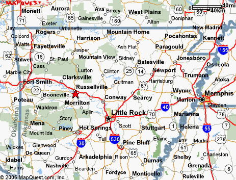 We are conveniently located just outside of Russellville, Arkansas. We are 5 miles South of Interstate 40 and 1 1/3 miles East of Arkansas State Highway 7.