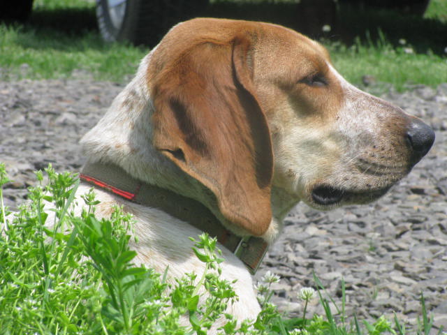 We also have a lot of other creatures on the place. We have Ronan, the English Mastiff. He is our protector. We lost his wife, Matilda, to a heat stroke in May of 2008, and we are still grieving the loss. And we have Willow, the rescue from Los Angles ... we think she is a mix of Sharpei and Australian Cattle Dog ... she looks like a black bat dog, but she's now getting alot of gray around her mussel and she's gotten quite arthritic, poor old girl. And we have Phyllis, a miniture dachshund, a rescue from the local animal shelter. And we have Bugsy and Buster, rescue Boston Terriers (they belong to my daughter). And, my Goodness!, I can't forget Belle, the English Coon Hound. I went in search of Belle to help Ronan keep the stray dogs and coyotes chased out of the yard, and she does her job very, very well, even though she is still only just a big ol' puppy. By the way, Belle probably has the best pedigree on the place. She comes from a very long line of champion and grand champion coon dogs. The fella I bought her from was quite disappointed that I only wanted her as a 'yard dog' and didn't intend to hunt any 'coons' with her ... and we have chickens (who are now too old to lay) and a one-eyed rooster (who is still young enough to crow!) and every stray cat the animal shelter could talk me into taking (which is several!)