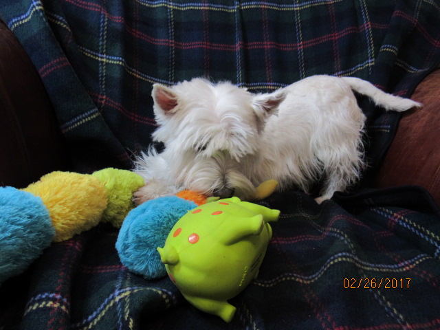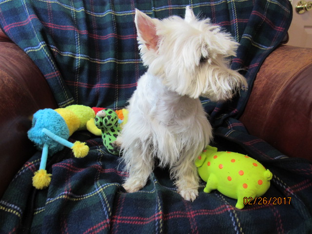 Bader is the daughter of LilChit and Tristin, and a full siblings to Andee, Mandee, Gael, Rhoswen, Fergus, Hillary, MacTristin, Siusan, Skye, and Suzie (can you tell I like this line?). LilChit is the youngest daughter of Skeezer and Murphy. If you go to Tristin's, Skeezer's, and Murpy's pages, you will find their 5 generation pedigrees, which will, ofcourse, give you a many-generation pedigree for Bader.