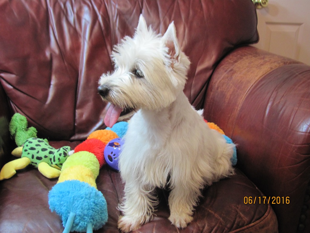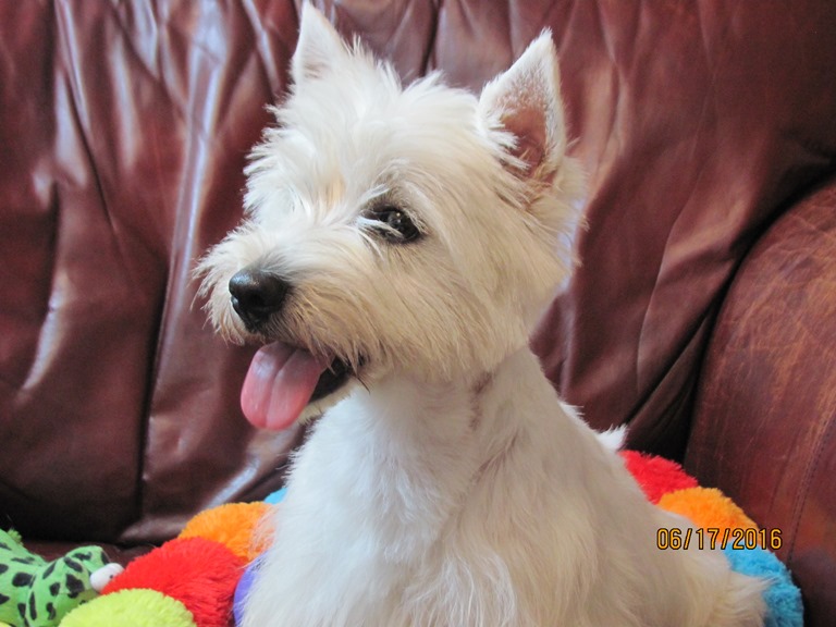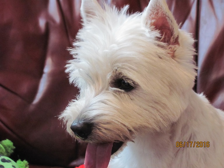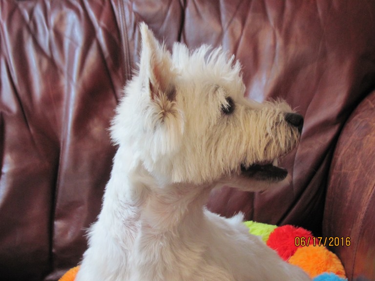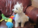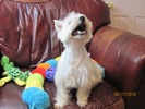 Hillary is a perfect Westie! She has all the spice and pepper of her mama, LilChit ... she's beautiful and intelligent, and about as spunky as they come! Hillary is the daughter of LilChit and Tristin, and the sister of Mandee, Brandee, Andee, Bader, Gael, Rhoswen, Siusan, Skye, Suzie, and MacTristin (can you tell I like to keep puppies from this line?). LilChit is the youngest daughter of Skeezer and Murphy. If you go to Tristin's, Skeezer's, and Murphy's pages, you will find their 5 generation pedigrees, which will, ofcourse, give you a many-generation pedigree for Hillary.