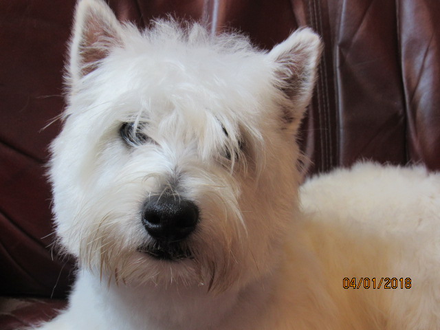 Malcolm is named after the creator of the Westie breed, Colonel Edward Donald Malcolm, of Poltalloch, Argyllshire, Scotland. This little guy is fourth generation Nancy's Westie on his mama's side (Mandee), and his daddy is Gerard, the extra-hairy old boy I brought back from the West Highlands of Scotland as a puppy. I chose to keep Malcolm because he was just too handsome to part with!