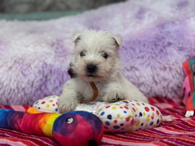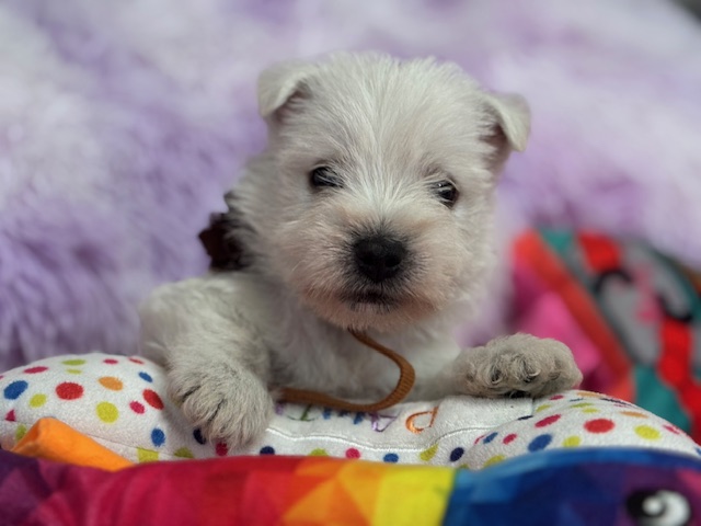 - Chocolate Rosette Boy is going to be a wonderful little brother to Finley (another Nancy's Westie) and a loving companion to the Zynda family!