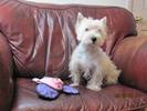 Redford Beau is a favorite beau with the Westie belles here at Nancy's Westies ... and he knows it! He loves to *strut his stuff*! He's a heck of a handsome lad, named after 'Robert' because he is so ridiculously good looking! Oh My Goodness! You should see this guy when we let him out to play! He has to stop at each of the other boys' door to growl and prance ... He's saying "See me! I'm out with the girls! Take that, Old Boy!" A bunch of Westies are sure entertaining!