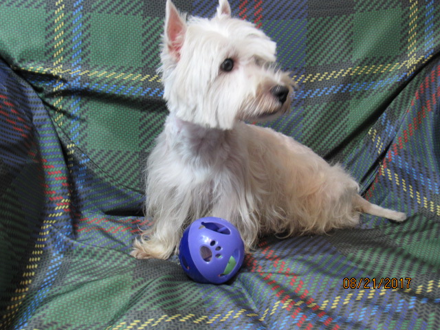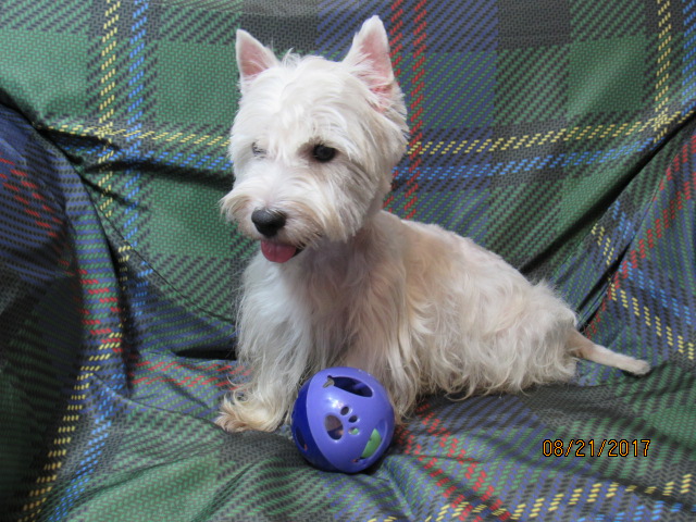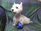 Skye is such a sweet & spicy little girl ... she dances with happiness and spunk! The name 'Skye' perfectly describes her! It connotes openess, love, and boundless energy, all rolled into one sweet and lovable little white furry ball! She is always doing the Westie happy dance! Happy, Happy, Happy! Or just wanting to snuggle ... she loves to just snuggle.
